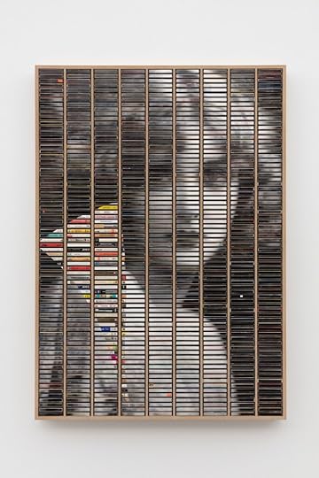 Gregor Hildebrandt’s signature media are cassette tape and vinyl, which he collages and assembles into apparently minimalist yet latently romantic paintings, sculptures, and installations. Resting in silence behind the glossy surface of his analog aesthetics, which verges on black and white monochrome, music and cinema haunt his practice. Whether pictorial or sculptural, all of his works contain prerecorded materials, which he references in the titles.These pop-cultural sources, usually a single song, are meant to trigger both collective and personal memories. Like analog storage media, his distinctive rip-off technique is a metaphor for the mnestic process itself: it consists in rubbing magnetic coating against double-sided adhesive tape stuck on canvas to trace intricate and elusive powdery patterns. Further relating to architectural Gesamtkunstwerk, Hildebrandt’s monumental sonic barriers made of stacked, bowl-shaped records and his sensual wall curtains made of unreeled tapes create paths for the visitors of his shows.
