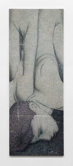 Sam Lipp’s paintings draw from a wide range of found images, committing ready-made pictures and the artist’s own photographs to painstaking recreations using a unique process of additive color applied with steel wool. Encompassing directive street signs, Michael Jackson’s transformed face, sexual domination, and sites of civic ordinance, Lipp’s source material exists at the intersection of the body and power. In Lipp’s additive and highly tangible paint application, pin-sized dots of impasto accumulate to create nuanced hues, establishing concrete analogs to fugitive virtual signs. The resulting works are both highly tactile paintings and direct references to the mechanics of screen culture; at once obfuscated by a dappled fog and rigorously precise. Through these effects, the artist underscores the power of visual culture to govern our lived experience, linking pictures and control.