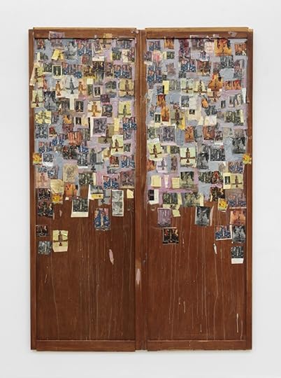 Peter Gallo, All Tomorrow’s Crucifixions, 2021, Oil & collage on plywood cabinet doors, 72 x 48 in, 182.9 x 121.9 cm, Courtesy of Sean Horton (Presents), New York, Photo: Matt Grubb