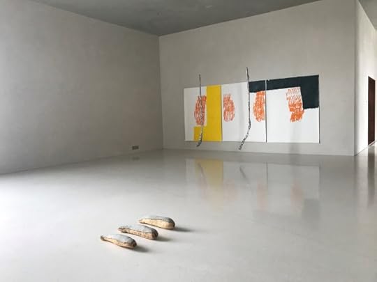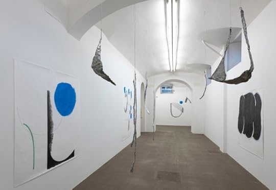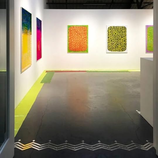 Solo show at Nancy Toomey Fine Art, Minnesota Street Project, San Francisco. Includes installation elements of silver tape floor drawings and satin & sequin fabrics running along the borders of the gallery floor.