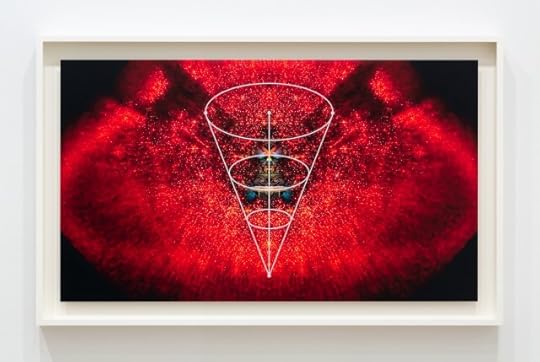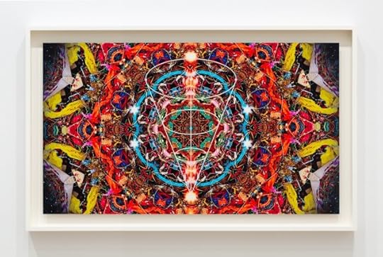 Miguel Abreu Gallery is pleased to announce the opening, on Thursday, December 9, of Jimmy Raskin’s STATIONS OF THE LAST ECCENTRIC, the artist’s fourth one-person exhibition at the gallery. STATIONS OF THE LAST ECCENTRIC features nine layered works, each holding at its center The Cone of Expression. This diagrammatic overlay includes a prominent vertical line that imposes a primordial fold, creating a mirror-image wherein a chosen picture of the cosmos faces itself. This event, in turn, conjures a myriad of faces staring back at the viewer. The phenomenon, known as facial pareidolia, instills an emotional charge in an otherwise non-sentient image or form. A point of connective stillness emerges, which may be considered sacrificial: we bypass the layers, critical-distance, dynamic conversations therein, and reach an almost humorous reduction point; an anthropomorphic flattening in the name of stillness. Within the gaze of the gaze, a space for mesmerization or resonance is generated.