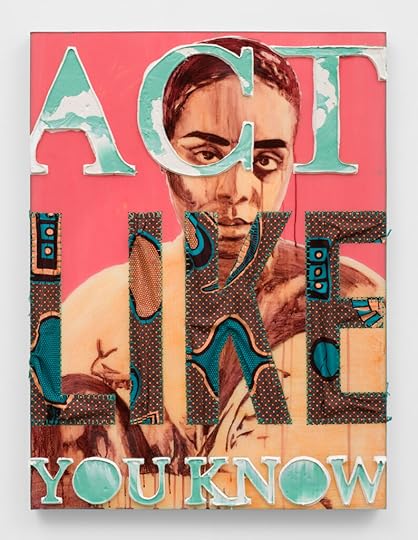 And I’m Calm, Calculated and Perfectly Aligned aprilbey@gmail.com Watercolor drawing, acrylic paint, epoxy resin, hand-sewn “African” fabric, oil impasto 40 x 30 in 2020