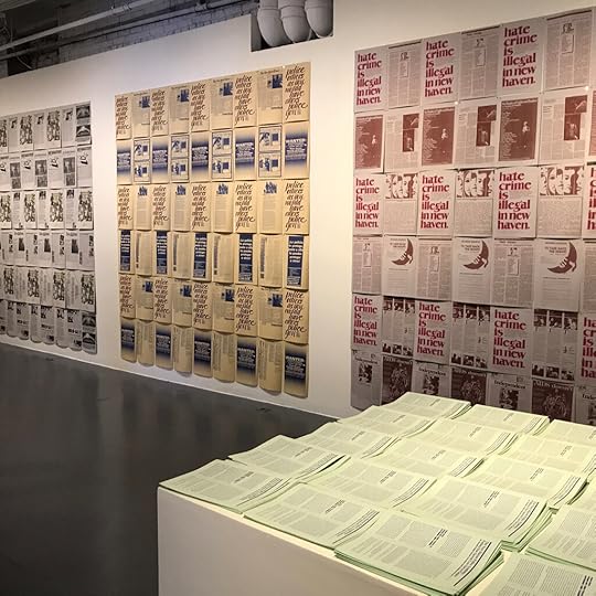 Partial view of the installation “Police Others As You Would Have Others Police You,” part of “Who Governs?” curated by Frank Mitchell, Artspace New Haven, October 30-December 12, 2020. Print installation made from the archives of Kay Codish, feminist theater director turned head of the New Haven Police Academy from 1992-2008. In the foreground is a reprint of her 1996 article.