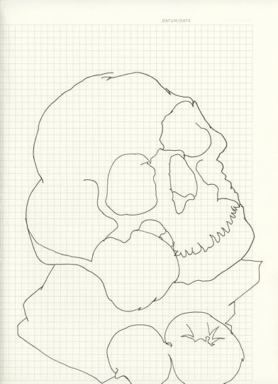 WhiteNoise/BlindContour series (Skull, Books, Headphones, Fruit), archival ink on graph journal paper, 12×8.5″, 2020