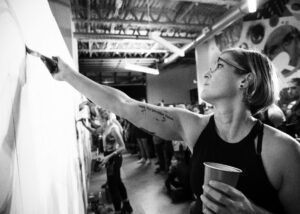 A Cincinnati native, Ustick has become one of the most prominent muralists in her region, completing over 10 large-scale public mural projects with ArtWorks and several independent projects that include commissions from the US Soccer Federation, 21C Museum Hotel Cincinnati, and multiple local establishments. Her Mr. Dynamite (James Brown) mural in Cincinnati has earned her and Cincinnati international attention. Elsewhere in the U.S., Ustick has created or contributed to murals in Tennessee, New Mexico, Illinois, Kentucky, and Florida, including invitations to the Walls for Women mural festival in Tennessee, and the CRE8IV Mural Festival in Rockford, Illinois. Internationally, Ustick has participated in the Proyecto Palimipsesto mural residency with La Fundación ‘ace para el Arte Contemporáneo y el ‘acePIRAR, Programa Internacional de Residencias Artísticas in 2017 in Buenos Aires, Argentina, and was Artist in Residence in spring 2018 with the Graniti Murales program in Graniti, Sicily.