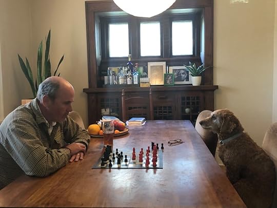 Bazzett and his dog, Zeus, playing chess during the pandemic. (photo credit: Leslie Bazzett)Michael Bazzett is a poet, teacher, and translator. His debut collection of poems, You Must Remember This, won the Linquist & Vennum Prize in 2014, and his fourth collection, The Temple, was published by Bull City Press in 2020.