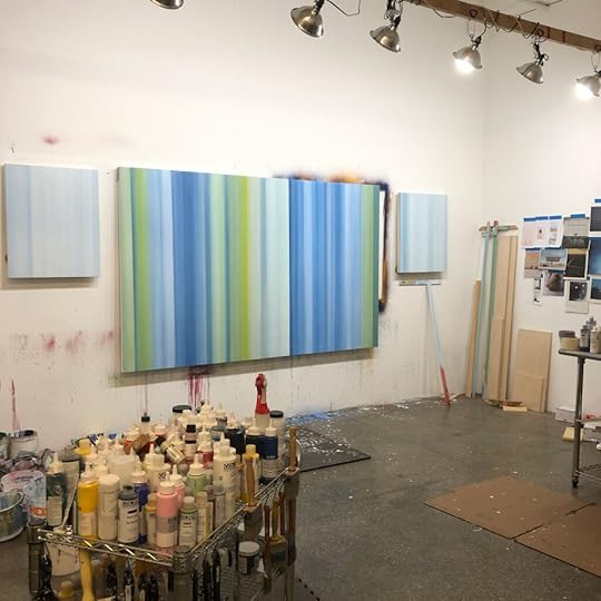 Photo of studio with the large painting in process that is mentioned in the interview; Unfinished, 2020, 60 x 96 inches