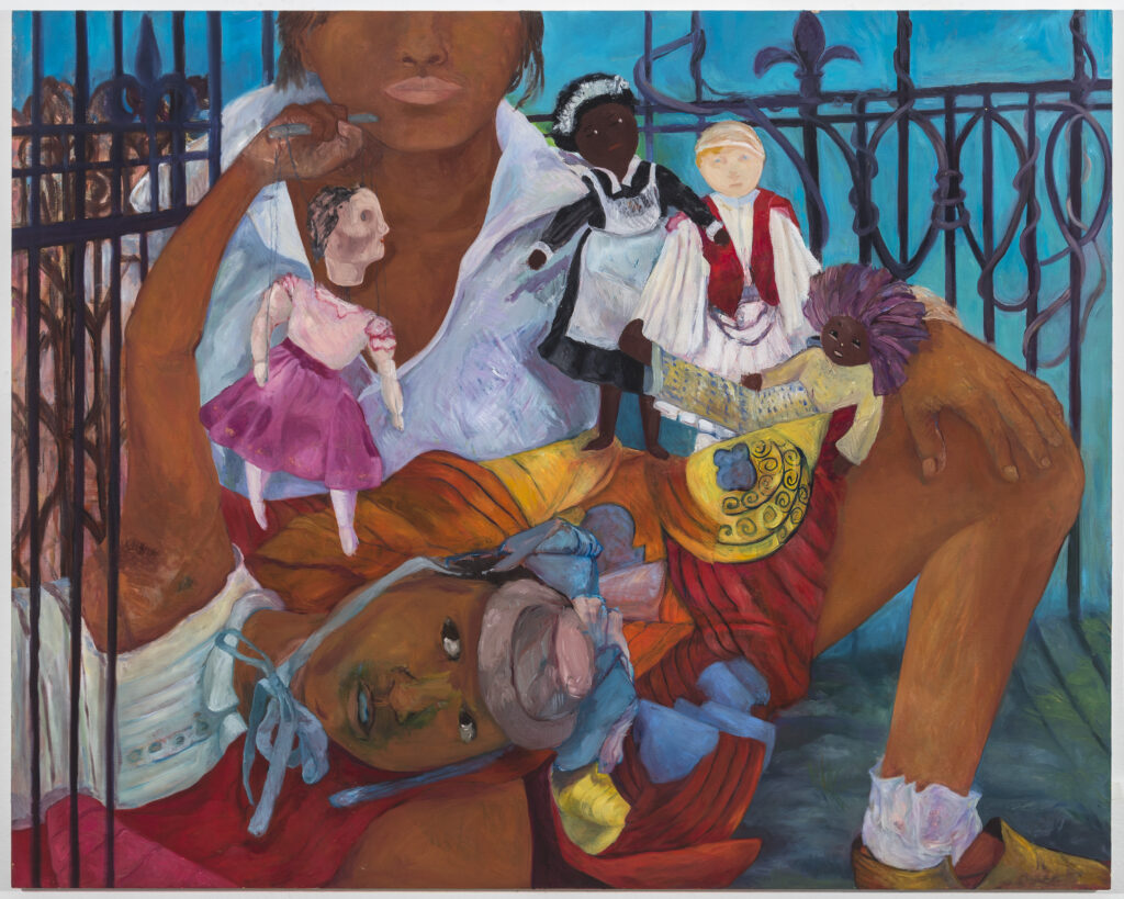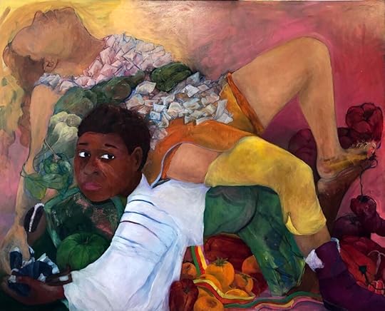 The lush color palette and dreamlike positioning of the figures ensures that their vulnerability – of age, of race, of sexual identity – is seen as strength and not as weakness. “My figures navigate a world of uncertainty as they search for understanding—both internally and in ever-shifting environments. I see the figures as vehicles to explore the existence of the most vulnerable adolescents, those evolving people of color, grappling with what will define and identify them. My paintings give voice and space to invisibility.”