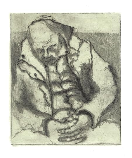 “Tired Going Home”; 2020; 6″ x 5; Drypoint and Engraving printed with Chine Collé