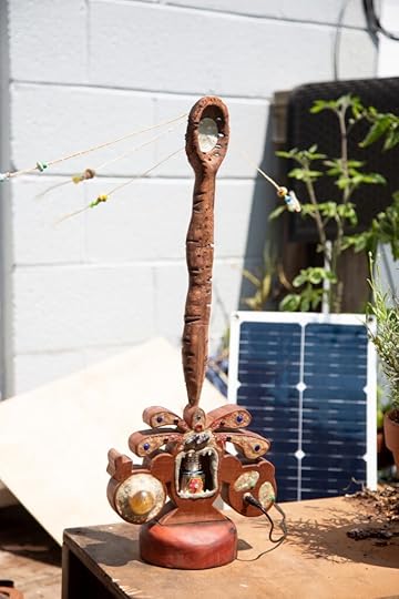 Collaborative solar powered work made for the show, Solar Coochie, “Moon in the Spoon” being tested.