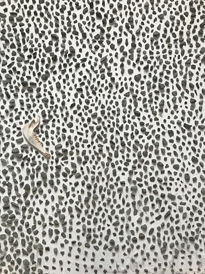 Untitled (detail, Rock Garden II), Gravel, bone, canvas on panel, 84 x 54 x 1 1/2 inches