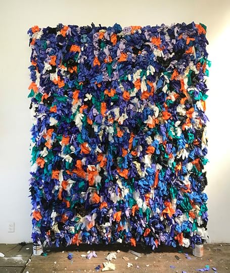 Untitled (PPE Field), 2020, Foraged used gloves, mixed media, canvas on panel, 92 x 74 x 1 1/2 inches
