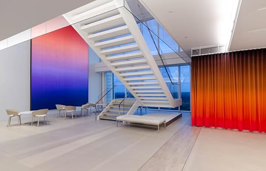 LUCIA KOCH, Dusk and Dawn, 2019 TEGNA Headquarters, Tysons, VA Light and air are the vital substances of a space, converting it into a place to be inhabited and transformed. Dusk and Dawn was created for an environment of coexistence and communication—though sound and air are isolated, transparent (glass) walls offer a visual continuity in between distinct spaces. For the TEGNA headquarters designed by the architectural firm Lehman Smith & McLeish (LSM), Koch created a work comprising a thirty foot LED back-lit color gradient lightbox that spans the height of the three-floor atrium. The lightbox establishes a dialogue with the free-flowing curtains installed on the opposing side of the atrium. The curtains, though separated by a floor, represent one continuous vertical color gradient establishing the overall unity of the work which represents the color transitions throughout the course of the day. Image credits: Christopher Grimes Projects