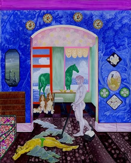 LARISSA BATES, Spring Cleaning/Limpieza de Primavera, 2024-2025 gouache and egg tempera on panel 20 by 16 inches