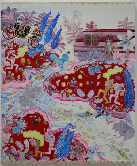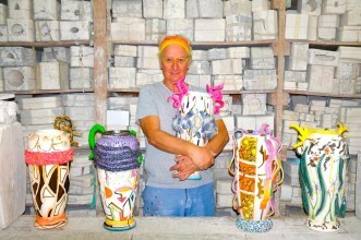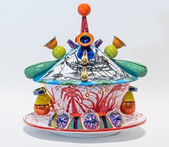 courtesy of Ruiz-Healy Art, New York / San AntonioNicolás Leiva is renowned for his exuberant sculptures and paintings that capture various expressive personal visions. Vessels, boats, abstract forms, flying carriages are transformed into ceramics in an explosion of lush primary colors embossed with metals like silver and gold. Animals and vegetables commingle in a garden of flowers amidst otherworldly places of shelter, are replicated as box-like reliquaries, and plate-like medallions in miniature close-up show territories transitioned from his works on paper. His imaginative world unfolds in infinite realms like a Möbius strip. Highly gestural, organic, or geometric, Leiva presents a host of archetypes in his emblems of flight, safety, and delight.