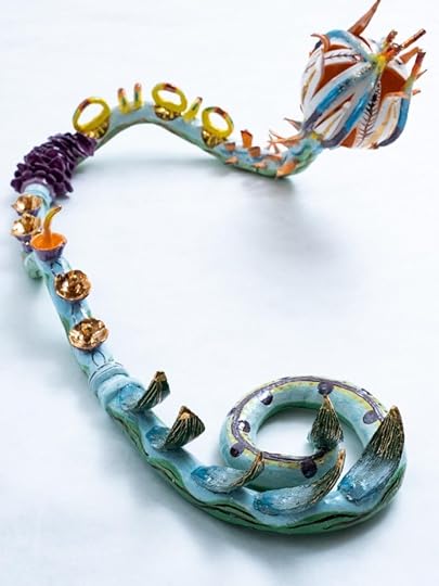 Nicolás Leiva, Sea Flora, 2024 Signed and dated on the underside Majolica ceramic with gold 35 x 15 x 15 in. courtesy of Ruiz-Healy Art, New York / San Antonio.