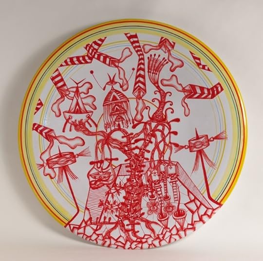 Nicolás Leiva, Arbol de los Sueños (Tree of Dreams), 2017 Signed and dated on the underside Majolica ceramic with gold and lustrous Ceramica Gatti, Italy 30 in diameter. courtesy of Ruiz-Healy Art, New York / San Antonio.