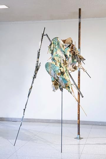 Precarious Windbreak 2019 H115 x 67 x 71 inch. copper corrosion and steel corrosion on pulp, steel, bronze, cane photo by Allegheny Art Galleries, PA