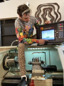 In my work, I use manufacturing to reflect on human-machine dynamics, sexuality and gender queerness. I think about how the workforces’ relationship to their machinery lacks heartfelt conscious reflection. Personality and machinery are often separate. I challenge this, making work that shows how humanity, personal identity and machinery can be a reflection of one another. Human sexuality and machine movements are similar in their dynamics and relationships. In my latest body of work, I use my lathe to produce phallic objects that explore gender queer motifs relating to the machinery I work with and my own sexual expression. My work sifts through old places in our culture.Factories that have seen many years and parts made.