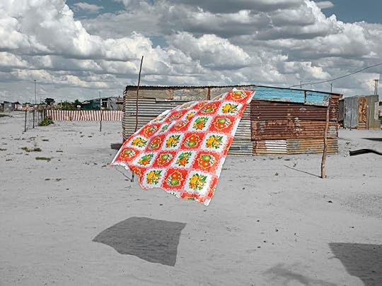 America Revisited 01: A torn plastic table cloth dries outside a corrugated shack in Phutanang township. Kimberley, South Africa. 2011.