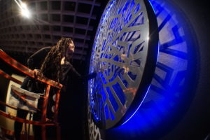 Ya Levy-La’ford is an artist, educator and foremost a transporter working between the visual and our community through a wide range of mediums including paint, sculpture, installation, video and sound. La’ford is known for her site-specific installations of her bold, geometric paintings to explore themes of transformation and transcendence. She builds each work with a unique vocabulary of intersecting lines and gestural repetition that create distinctive visual impact. Her labyrinth patterns are both an exploration of self and place, as well as a reflection of her Jamaican background. Complex yet minimal, La’ford’s work emphasizes contrasts between light and dark, positive and negative space and draw connections between interconnectivity and human neutrality.