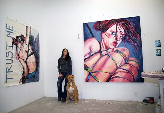 Sarah Stolar in the studio with her pit bull Gabriel and work in-progress for her new project The Grief Club photo credit Jeff MedinasSarah Stolar (b. 1974, Chicago, IL) is an interdisciplinary artist who lives in Santa Fe, New Mexico. Working from a vast technical perspective, the breadth of her work includes painting, drawing, multi-media installation, film, video and performance art. Rooted in a 20-year investigation of the female psychological narrative, common threads in her work include coming of age, loss of innocence, sexuality, beauty, power, death, spirituality, and identity. Sarah is the daughter of artist and educator Merlene Schain, and in the family lineage of 19th-century German painter Adolph von Menzel and Rookwood Pottery master potter John von Menzel of the American Arts and Crafts Movement. She grew up in her mother’s art studio and award-winning art school Schain Studios in Cincinnati, OH, received a BFA in Painting from the Art Academy of Cincinnati, and an MFA in New Genres from the San Francisco Art Institute. Sarah’s visual art, performance, and collaborative work have exhibited across the United States and in Argentina, Spain, Germany, Austria, Finland, Italy, and Cuba with solo exhibitions at the New Mexico Museum of Art, Harwood Museum of Art, and BGMoCA in Montevideo, Uruguay as well as awards and honors from international film festivals, et al. Her work has been featured in multiple publications including The Nation Magazine, LandEscape Art Review, Nomos Journal, and Hyperallergic. A committed educator for over fifteen years, Sarah Stolar serves on multiple boards and academic committees, and is currently the Chair of the Art Department at the University of New Mexico – Taos.