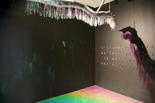 Botanica absentia, 2019, aluminum, chrome, stainless steel, dichroic plexiglass, holographic vinyl, wood, at The Contemporary Art Museum St. Louis Photo: Josh Rowan