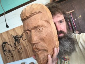 As well as carving wood, his primary medium, Wing has travelled the world carving ice, snow and sand. Among the most influential experiences of Wing’s life were five weeks spent in Japan studying Buddhist and traditional wood carvings and two summers learning to carve marble in the studio of Manuel Neri, in Carrara, Italy. Wing’s family, home and studio are in West Philadelphia where he is part of a vibrant arts community.