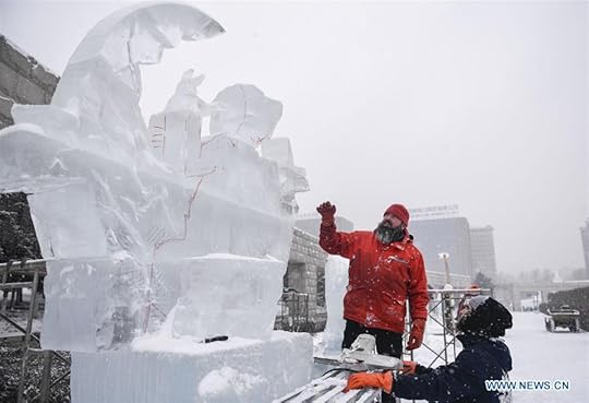 Sculpting ice at Changchun World Sculpture Park, 2018.