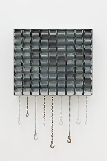 Housing (Lottery), 2025 Galvanized steel, cast brass, cast aluminum, found chains 64 x 37 1/2 x 6 1/2 in | 163 x 95.5 x 16.5 cm