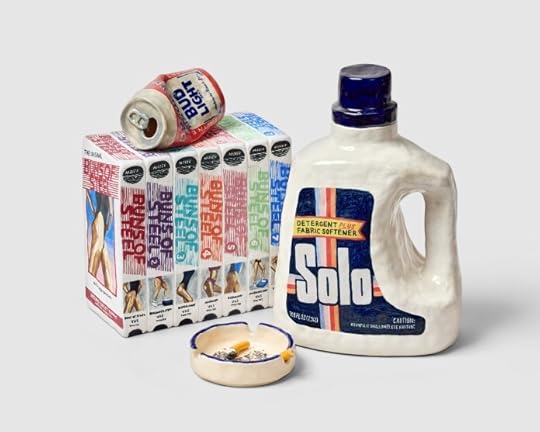 Stephanie H. Shih in the studio, Brooklyn, NY, 2025. Photo: Robert BredvadStephanie H. Shih (b. 1986, Philadelphia, PA) renders outdated consumer goods as trompe l’oeil sculptures that reveal the tensions within American domestic life. Turning everyday items—a Thighmaster, a self-help book, many pantries’ worth of condiments—into intricately painted ceramic objects transforms each into a permanent artifact. Seen together, the works play with notions of timelessness and obsolescence, nostalgia and disillusionment.