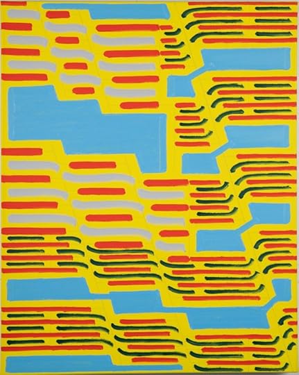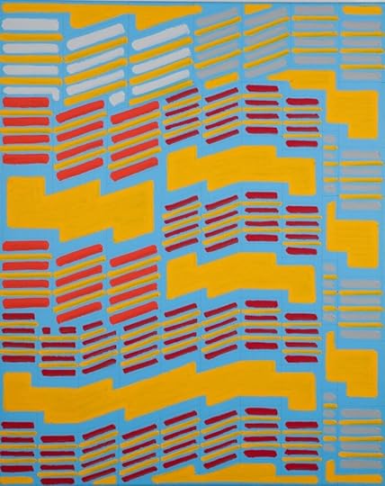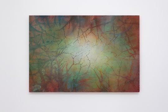 The artist’s new series of lattice paintings, including Glass in Moving Water, explores what happens when we process two complementary paintings at the same time. The artist creates an underpainting on the canvas, then layers a second composition on a raised pattern of dots. The combined acrylic-on-canvas works engage the viewers’ position and distance in the surrounding architecture of the gallery.