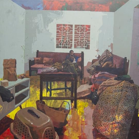At first glance, Mung’ora’s work offers glimpses into everyday life in Nairobi, capturing moments ranging from bustling cityscapes to intimate portraits.Yet, upon deeper reflection, Mung’ora’s canvases reveal a profound commentary on the fragmentation of urban landscapes, where physical and socialboundaries delineate diverse experiences from street to street. Through meticulously layered compositions, Mung’ora intertwines historical referenceswith modern-day scenes, highlighting the enduring imprints of past lives while emphasizing the disparities inherent in Nairobi’s evolving environments.