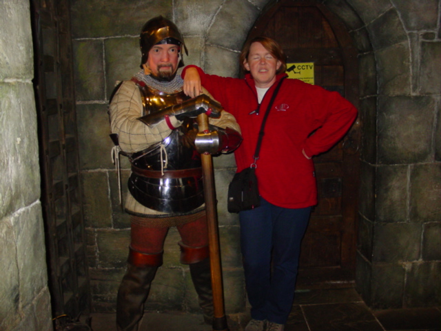 Ms. Stuart and friend at Warwick Castle in 2005I have, to my knowledge, worked in at least two haunted buildings. Both of them were former nineteenth century mansions and both had been used by the Australian Army for many, many years. The first, “Netherby” in Melbourne was the Headquarters of the 3rd Training Group during my time but had been, reputedly, used by ASIO (Australian Security and Intelligency Organisation) or its equivalent in the 1950s. There were stories of soundproofed cellars and secret tunnels but no evidence has ever been found of either, even during Netherby’s more recent conversion to a wing of a modern hotel. Nothing untoward happened to me in all the years I worked at Netherby but I did start to pick up the stories of “Albert” reputedly the lonely ghost of a Rumanian spy. After collecting quite a few eye witness reports of Albert's activities, it started me on a quest to track down more ghost stories from Army establishments. I figured soldiers made fairly reliable witnesses. The other haunted mansion is Grosvenor (close to Netherby) which served as Headquarters 4th Brigade when I first went there. Like Netherby it has long since been sold and is now a rather depressed facade to some particularly ghastly apartments. Grosvenor was far grander than Netherby and was reputedly haunted by “Esmerelda”, a young maid servant who had been found drowned in the swamp that is now Albert Park Lake. Esmerelda and I did have some firsthand contact and like Albert she is well chronicled.