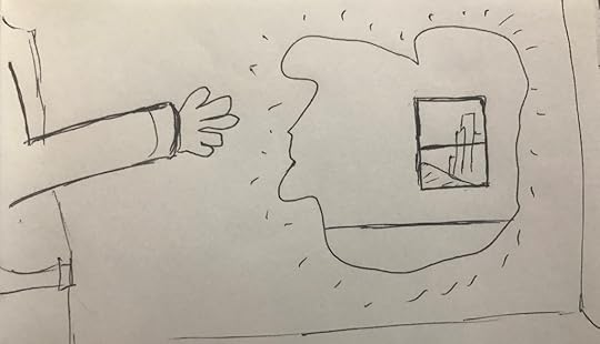 Suddenly a spot appeared on the wall, which grew and grew until there was a hole large enough to step through. I could see that the room beyond was not the same room I would have found had I cut through the w...