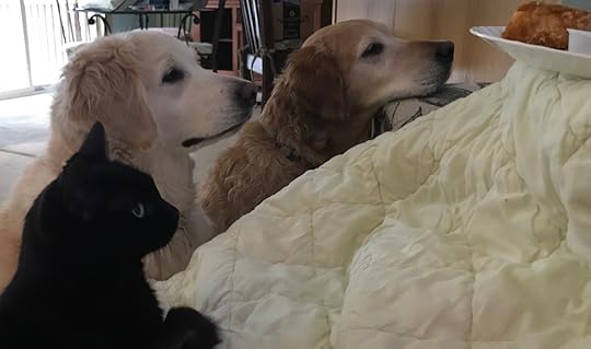 She holds her head up, as best she can, as if to say, “If he can be up this early, I guess I can, too” — my canine companion, never very far away unless I’ve left her behind to bring bacon home.