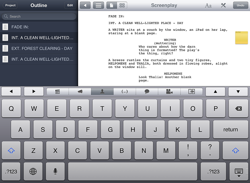 Storyist – A program very similar to Scrivener (just Google “scrivener vs storyist” and you can settle down with a pot of coffee for a day full of reading), but with one massive advantage: an iPad app.