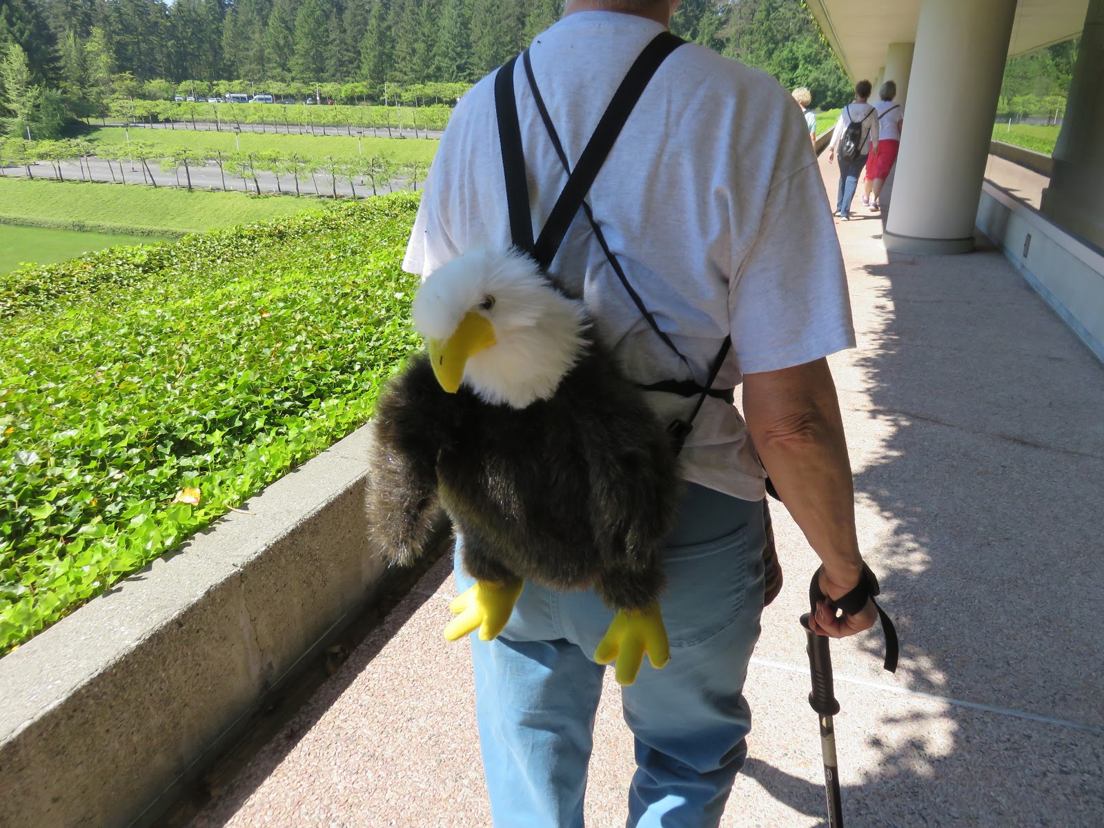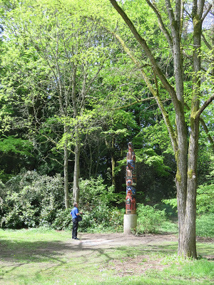 Because of excavation work (new plantings!) we had to detour off our intended route, but then we came across this totem pole - "Origin of the Eagle Clan!"