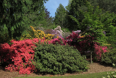 Rhododendrons and azaleas bloomed everywhere in a wide range of colors. Many of the rhodies were tree-size.