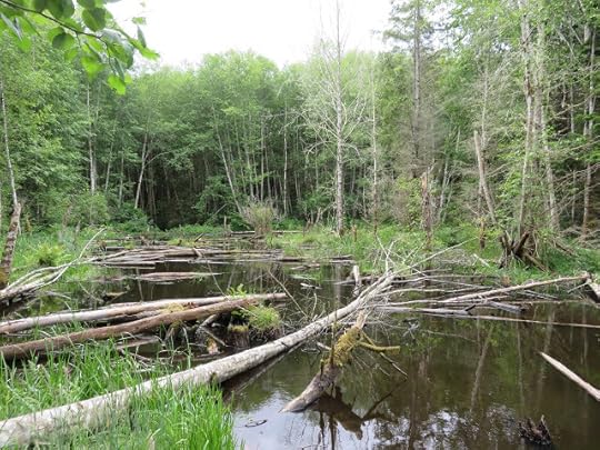Although we walked through towering trees, up and down hills, and through the biggest collection of ferns I've ever seen, the most memorable parts of the hike for me were the beaver pond and dam. We didn't see the shy inhabitants, but we found ample evidence of their presence. Looks like they've been as busy as ... well... beavers! [Click on photos for a closer look.]