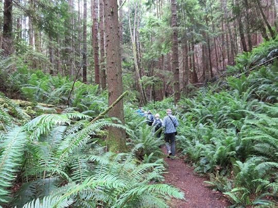 One of the men on our walk educated us about ferns, and we learned to identify several varieties. The ones in this photo are predominantly sword ferns, but we also learned about bracken ferns, lady ferns, deer ferns, and licorice ferns. Who knew there were so many kinds?