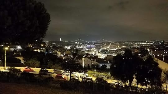 This view is from the highest hill in Lisbon, with the Ponte 25 de Abril bridge in the distance. The white monolith to the left of the bridge is the Christo Rei (Christ the King) statue, inspired by the Christ the Redeemer statue in Rio de Janeiro, Brazil.
