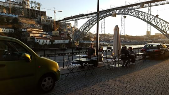 This tapas restaurant offered indoor dining or tables alongside the narrow road, overlooking the Douro River and Ponte de Dona Maria Pia bridge in Porto.