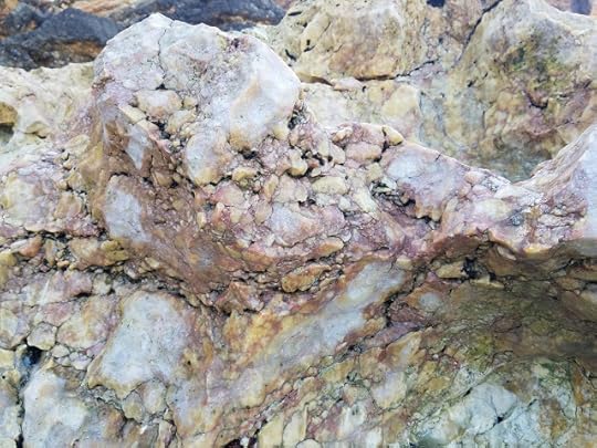 Rocks and sheer cliffs at Farol da Nazaré. (That's the Nazaré lighthouse on the top of the cliffs. It's at the tip of the bluff in the photo above.) We were fascinated by the colors of the rocks lining the shore.
