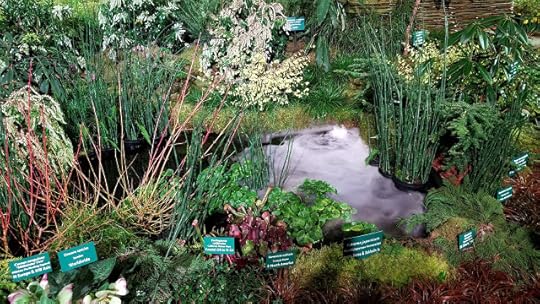Many displays included labels that identified the plants. Dry ice in this water feature added a little drama to this scene.