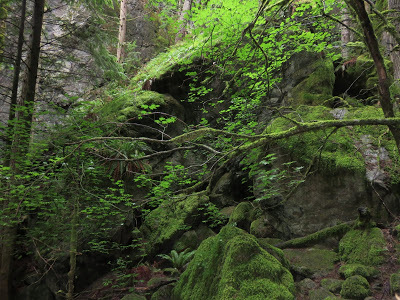 Huge boulders and sheer rock faces lined much of the trail. I've been told that rock climbers love to tackle them. From the WTA: