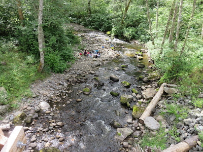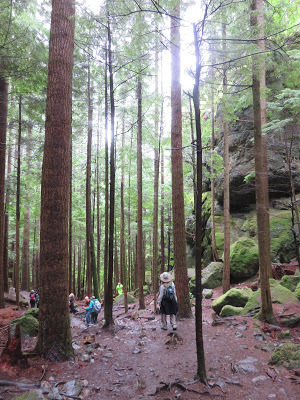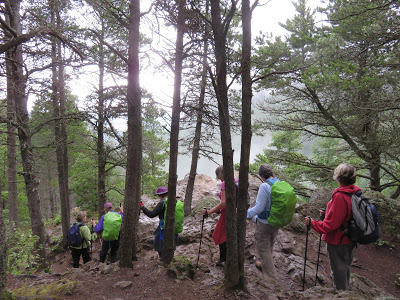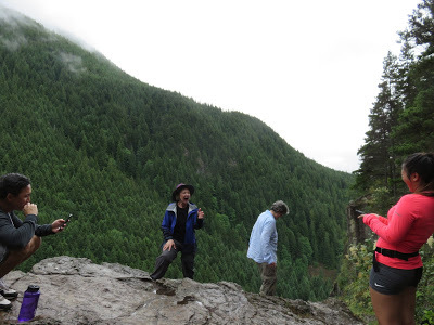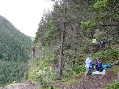 We used a completely different set of muscles to work our way back down. By then we'd been rained on, and the path had even more slick places. Kind of scary to me.