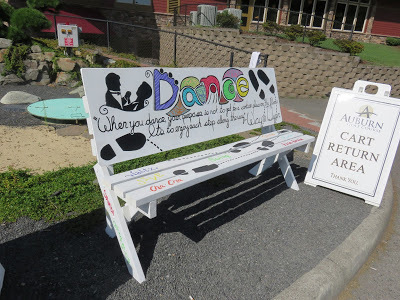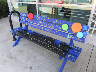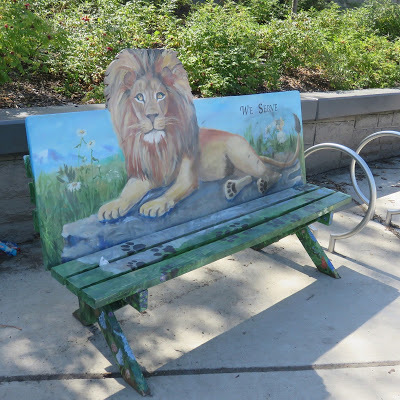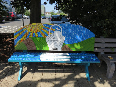 Last July I roamed the streets of Auburn, Washington, taking photos of Pianos on Parade. Then I posted them HERE for Saturday Snapshot. This year, however, the big attraction was park benches. I didn't capture them all, but here are the ones I tracked down. The Green River College Carpentry Department fabricated the wooden benches and various organizations provided the designs. (Click on photos for a closer look.)