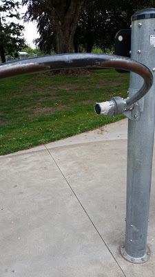 I try to have a positive attitude, and most of the time I succeed, but vandalism fills me with dismay. Here are some photos I took at a local park a couple of days ago. We've been taking our granddaughter to the "Discovery Playground" for several years. It has lots of fun things for her to do, and the surface beneath the swings and other equipment is cushioned. The barrier-free playground (built to be accessible to disabled children) opened in 2010.