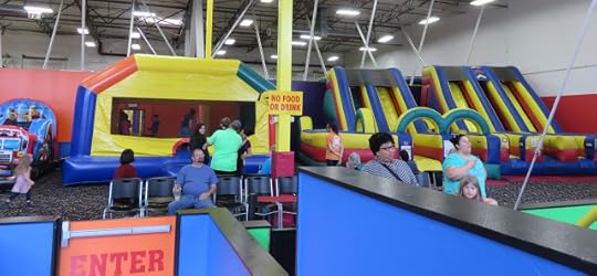 First they headed to the yellow bouncy house and bouncy slides in the photo above. The facility also has an even bigger bouncy house maze and a rock climbing wall, that I somehow didn't get a picture of, as well as a separate bouncy area for smaller children.